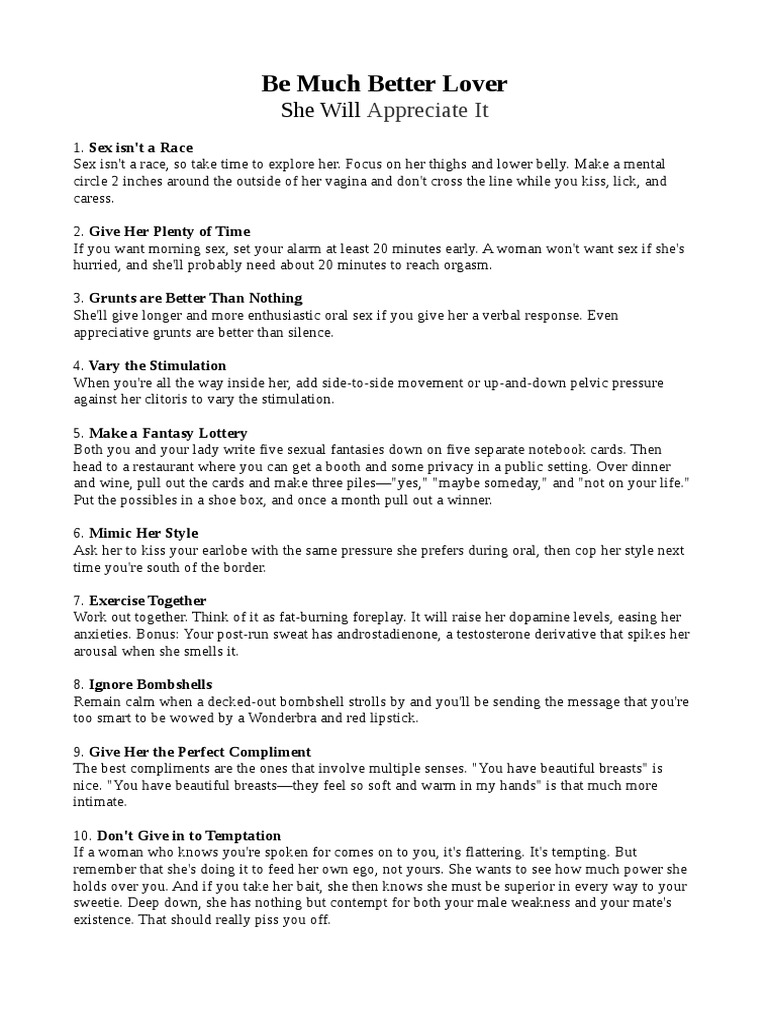 How To Be A Better Lover - Find ways that your partner wants to grow and determine to help each other grow.. How do you know if someone loves you? These are your inside tips on how to be a better lover. In the comfort of home you can tap into the power of tantra — time proven techniques and tips on how to be a better lover — in basically every aspect of your being. Are you in a relationship? Whether it's brand new or years old, learn how to make it better.